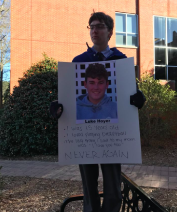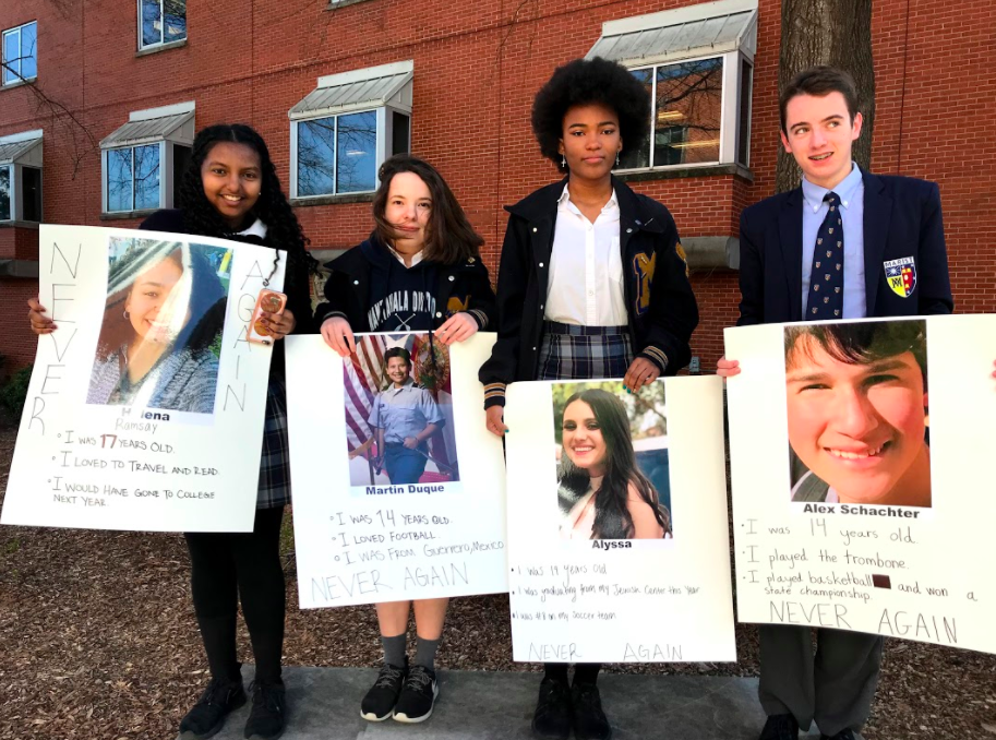 Three faculty members, representing the three adults who were killed, and 14 students for the 14 students who lost their lives, stood around a Peace Pole with posters that had a picture of a victim and brief information about him or her. One adult’s poster read, “I was engaged… soon to be married.” Another poster of a student read, “My dad used to call me Princess.” For many Marist students, seeing the pictures and reading about the victims hit close to home. Many kids and even teachers were moved to tears, which, although we would never want to make anyone cry, was very powerful to see.