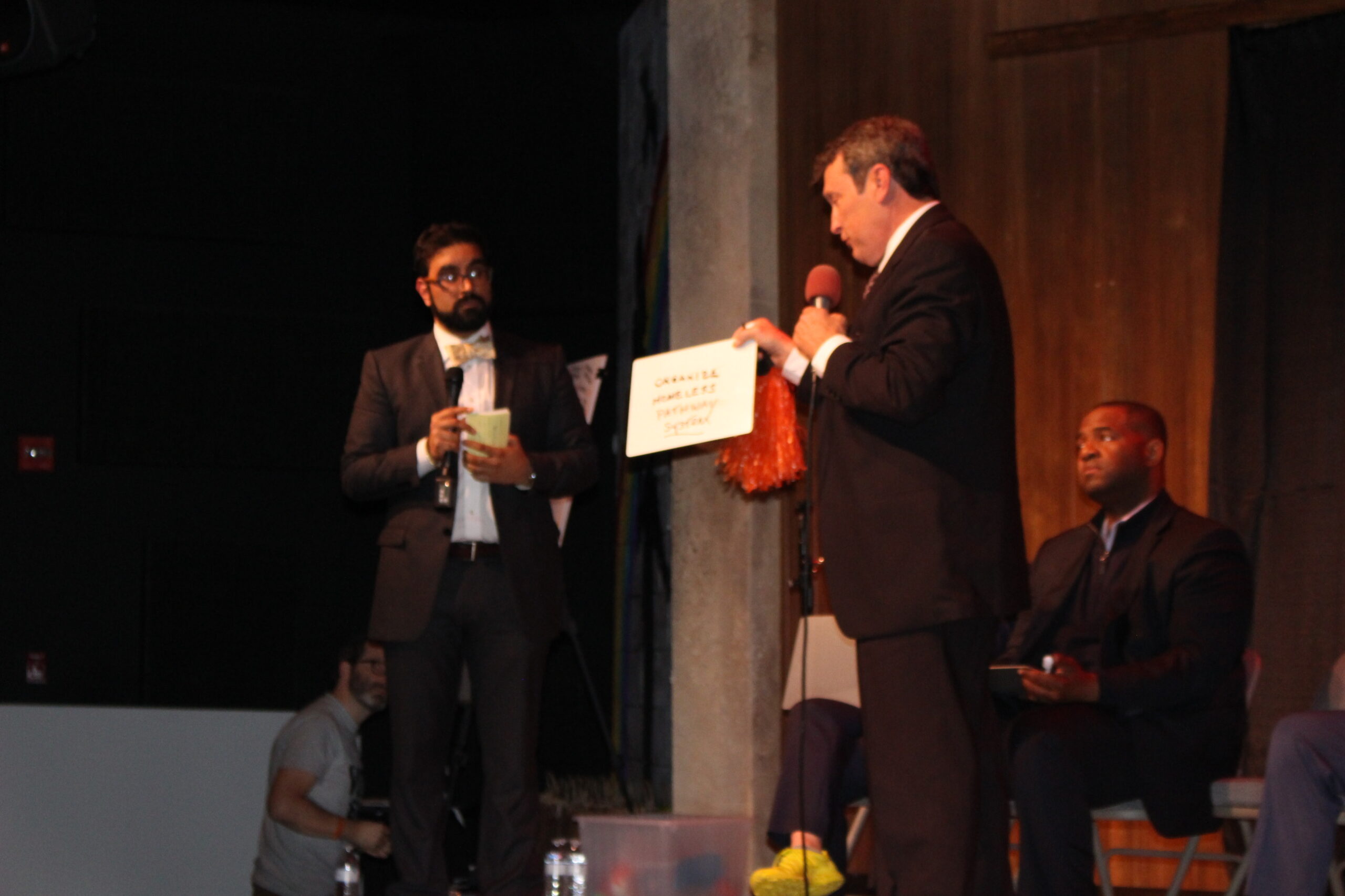 The first question Rohit Malhotra, the moderator and CCI’s executive director and founder, asked: “What would your protest sign look like if you were to stand up for something that wasn’t your job?” Candidates used dry-erase markers and a small whiteboard to write down their answer. Candidate Glenn Wrightson said he would have people experiencing homelessness participate in recycling. This, according to Wrightson, would give more job opportunities and make the city cleaner.